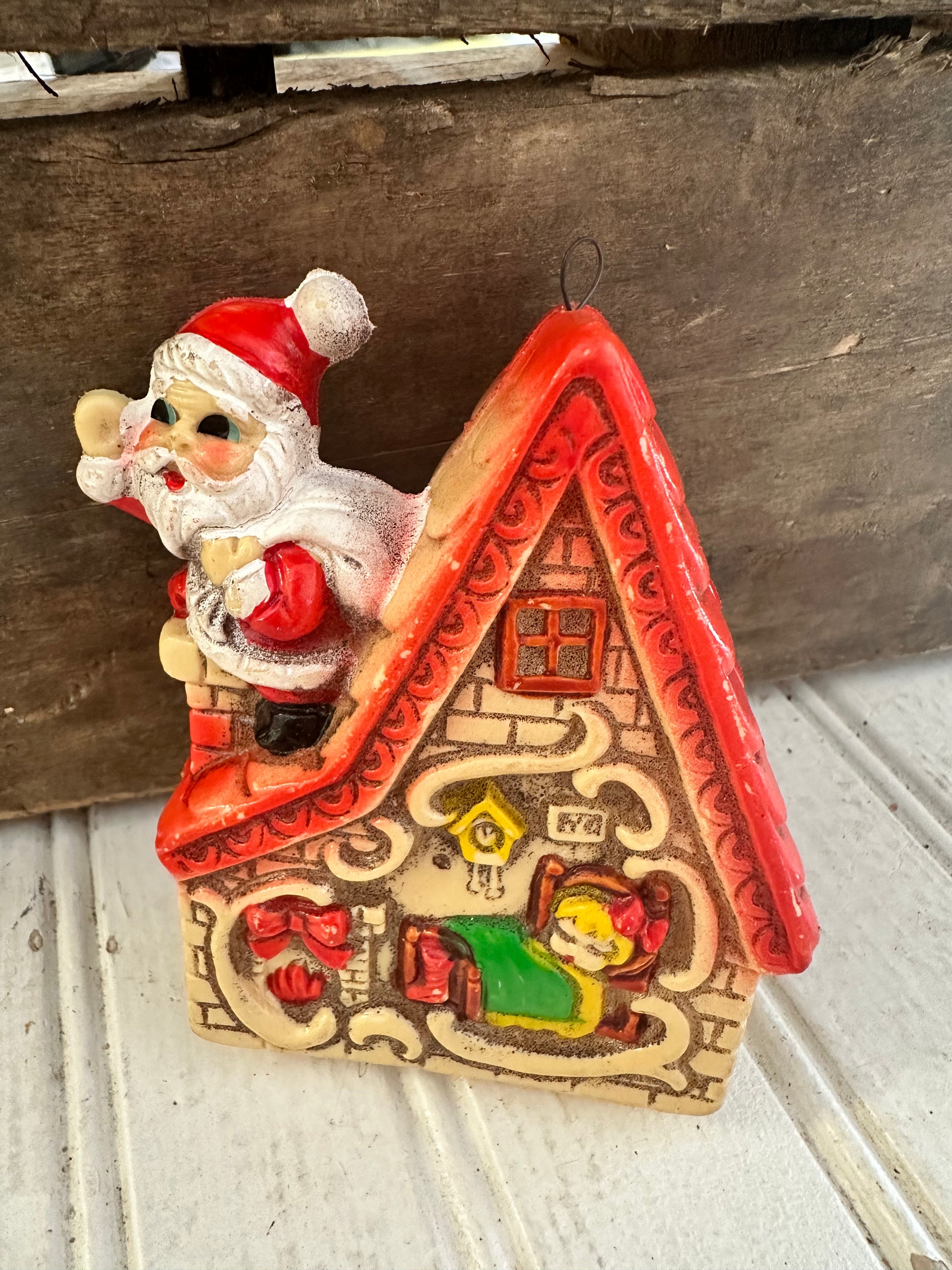 Santa & House Blow Mold Ornament